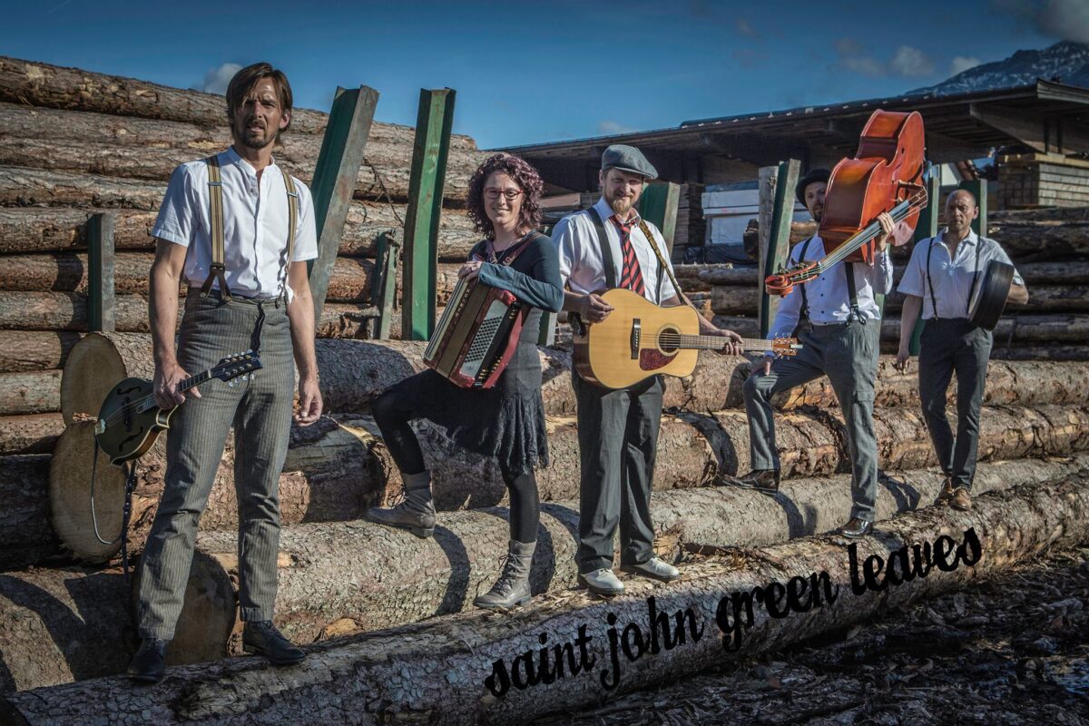 saint john green leaves – hinter diesem langen Namen stecken 6 Musiker aus Österreich, Deutschland und Schottland, die sich der Irish Folkmusic verschrieben haben. Eine äußerst gelungene Mischung aus Irish Traditionals und Klassikern der Rockmusik im Sound der „Grünen Insel“ begeistern ihre ständig wachsende Fangemeinde. Mit einer guten Portion Humor und den Klängen von mehrstimmigen Gesängen, Gitarren, Mandoline, Irish Bouzouki, Banjo, Akkordeon, Violine, Tin Whistle, Bodhran, Percussion und Bass machen sie ihre Liveauftritte zu einem unvergesslichen Erlebnis. Kein Wunder, wenn Du plötzlich das Verlangen nach einem Pint Guinness verspürst.