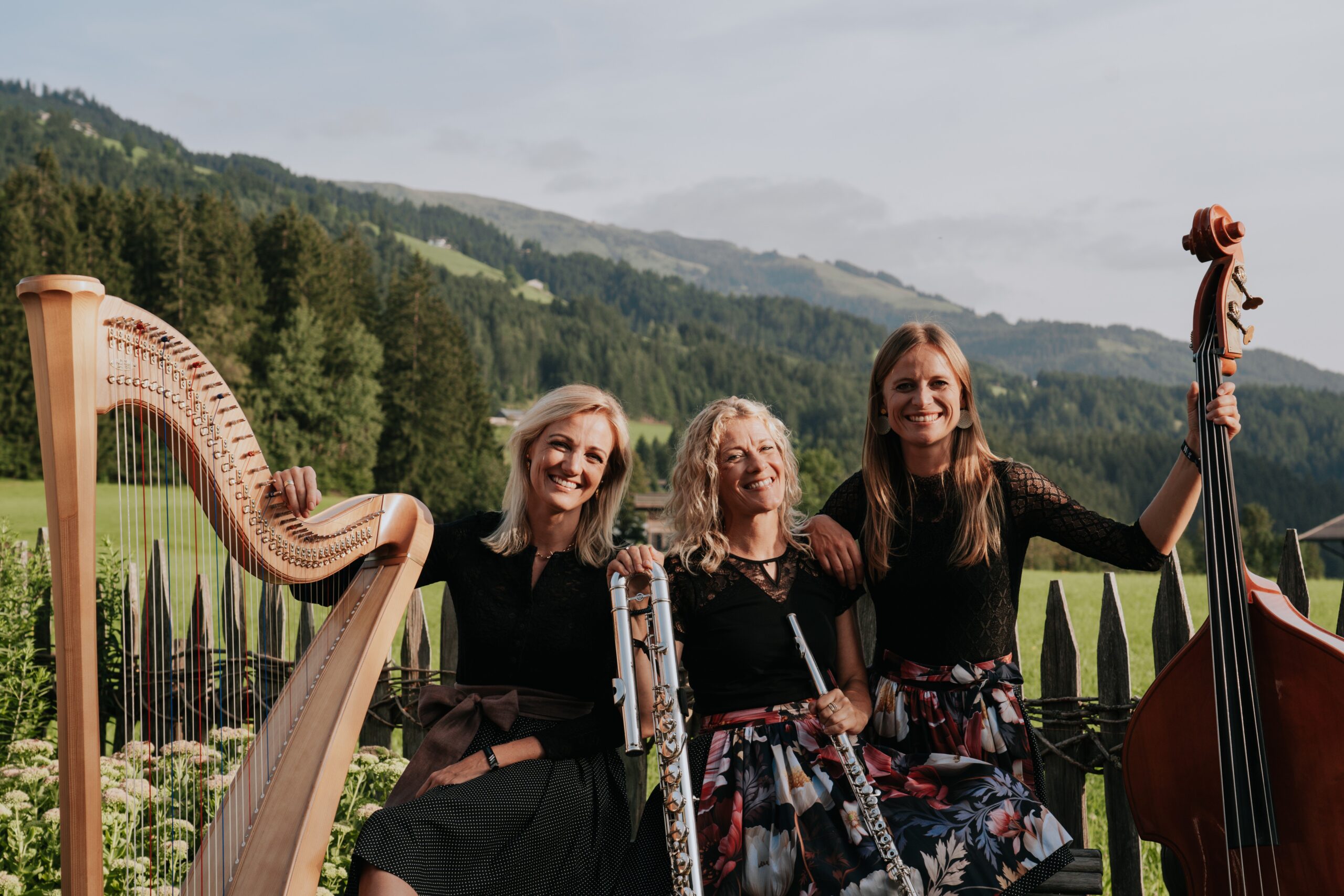 Katrin Unterlercher: Harfe, Hackbrett, Gesang, Komposition (Studium Harfe am Tiroler Landeskonservatorium/ ehemalige Harfinistin Pixner Projekt/ Ensemble Katrin und Werner Unterlercher/ Lehrtätigkeit bei diversen Volksmusikseminaren)